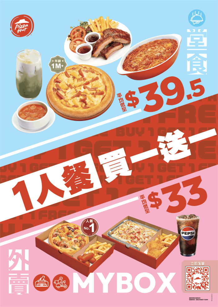 新年震撼優惠!Pizza Hut 一人餐限時買一送一