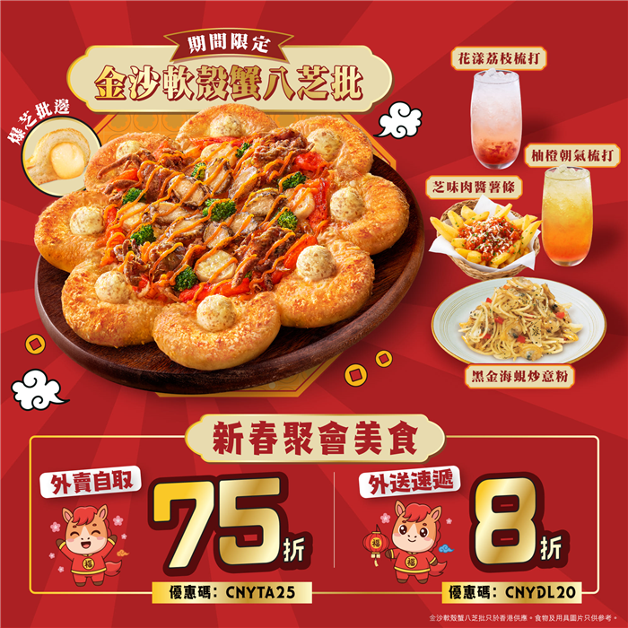 金沙八芝批登場!Pizza Hut 馬年賀歲限定 陪你金銀滿屋